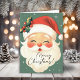 Diese niedliche Weihnachtskarte bezeugt den zeitlosen Charme der Urlaubssaison mit einem nostalgischen Bild vom bezaubernden Gesicht des Weihnachtsmannes, wunderschönes Set vor einem weichen grünen Hintergrund, bestreut von strahlenden weißen Sternen, die ein Gefühl von Staunen und Freude wecken. Im Inneren können Sie Ihre Karte personalisieren, indem Sie eine herzliche Nachricht schreiben (oder die Nachricht verlassen, wie sie ist) und Ihren Namen hinzufügen, um Ihren Lieben personalisierten Beifall zu verbreiten. Ideal für diejenigen, die den klassischen Weihnachtsgeist lieben, ist diese Karte eine angenehme Art, Ihre festlichen Wünsche zu äußern.