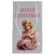 Merry Cristmas Geschenktasche mit einer nostalgischen Illustration eines Engel Mädchen in frostrosa auf einem silbernen Hintergrund. Eine exklusive und großartige Geschenktasche. Passen Sie Ihre Textauswahl auf Vorder- und Rückseite an. Ich wünsche dir ein nostalgisches frohes Weihnachtsfest. Erhältlich in verschiedenen Farben, Größen und Oberflächen.