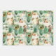 Dieses Muster hat ein altes Weihnachtspapier-Design. Es hat ein sich wiederholendes Muster mit einer sanften, verblassten Farbpalette, meist in den Farbtönen Minzgrün, Weiß und Rot/Golden. Das Design umfasst klassische Urlaubselemente: Weihnachtsbäume (mit weißem Schnee/Herde dekoriert) Große Ziergegenstände (einige runde, einige längliche und detaillierte) Bonbons und kleine Bögen/Kränze Der Weihnachtsmann blickt auf eine weiße Ruffel oder Wolke Kleine Engelfiguren mit Flügeln. Eine Winterlandschaft, die ein Haus, Bäume und ein von Pferden gezeichnet Schlitten zeigt.. Es hat ein nostalgisches Gesamtgefühl aus der Mitte des Jahrhunderts.