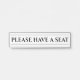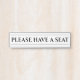 Dieses nostalgische und altmodische Design enthält die Meldung "BITTE HABEN SIE EINEN SITZ". Dies könnte in einer Sitzecke verwendet werden, um Besucher, Patienten oder Kunden darüber zu informieren, dass sie in Kürze unterstützt werden und in der Zwischenzeit einen Platz einnehmen sollten.