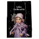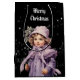 Nostalgisch und Lila Perfect Merry Cristmas Geschenktasche. Illustration eines Engelmädchens, lila mit Schneeflocken gekleidet, die um sie herumtanzen. Eine luxuriöse Geschenktasche für das besondere Geschenk. Passen Sie Ihre Textauswahl auf Vorder- und Rückseite an. Ich wünsche dir ein nostalgisches frohes Weihnachtsfest. Erhältlich in verschiedenen Farben, Größen und Oberflächen. Hier eine schwarze Geschenktüte Farbe.