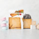 Dieses Verpackungspapier mit Vintagem Aussehen präsentiert sich in braunem Papier umhüllt mit Zimtsticks, Kiefern und Beeren, Bändern und Geschenketiketten.