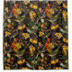 Nostalgische Blume und Vögel schwarz Duschvorhang