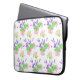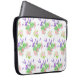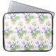 Ein hübscher, blumengeschmückter Laptop-Ärmel mit einem Muster aus rosa Rosen, cremig weißem Mock Orange Blossom und lila Lavendel, von einem handbemalten Aquarelldesign von Judy Adamson und schwarzer Bindung. Der Ärmel ist für einen 15" Laptop, aber das Design passt kleinere Ärmel mit ein wenig Anpassung des Musters.