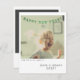 Ein Happy New Year Party Raster überträgt Ihr Foto (wie in Ihrem Foto) auf einer Sofortkarte im Stil eines Fotos. Das Foto verfügt über einen Zazzle-Filter für ein altes Aussehen und Ihr individueller Urlaubsgruß ist in einem handgeschriebenen Stil Schriftart.