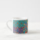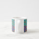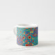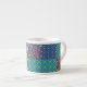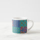 Eine schicke Espresso-Tasse mit nostalgischem Imitat-Patchwork aus Granny Print-Mustern. Teil der Posh- und Painterly 'Granny Print' Kollektion, aus einer handbemalten Papiercollage von Judy Adamson, kann dieses Muster an jede Tasse angepasst werden.