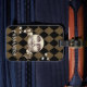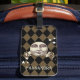 Ein nostalgischer Vintager Steampunk-Fantasie-Mann im Monddesign mit einem harlequin-kontrollierten Hintergrund. In antiken Sepia-Tönen. Personalisieren Sie mit Ihrem Namen oder geben Sie als Geschenk.
