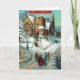 Eine altmodische Weihnachtskarte mit einer Kirchenszene während der Ferien.