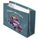 Nostalgische Lila LKW-Zuhause für Weihnachten große Geschenktasche. Eine exklusive und großartige Geschenktasche. Groß und schwer zu verpacken? Eine große Geschenktasche ist Ihre Lösung. Passen Sie Ihre Textauswahl auf Vorder- und Rückseite an. Frohe Lila Weihnachten! Erhältlich in verschiedenen Farben und Oberflächen. Hier auf einer aquamarinen Geschenktasche.