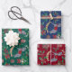 Schönes nostalgisches Set mit handbemalten Rockpferden, Teddybären und botanischen Elementen wie Misteloe und Tannenzweige. Dieses Papier verleiht jedem Geschenk einen festlichen Charme. Das Set besteht aus drei Blättern in Grün, Blau und Rot.
