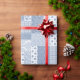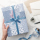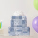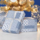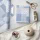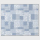 Eine Rolle des Chic Geschenk-Verpackungs-Papiers, mit einem nostalgischen Imitat-Patchwork der Blumen-, Karo- und Polkapunktmuster, im Indigo-Blau und im Weiß. Der Teil der vornehmen und Painterly "Indigo" Sammlung, dieses Muster kann leicht justiert werden, um jedes mögliches Packpapier zu passen.