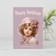Nostalgisches Mädchen in Rosa Feiertagskarte