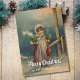 Nostalgisches Vintages Mädchen von Laternenszene Feiertagskarte