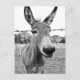 Schwarz-Weiß-Foto eines neugierigen Esels