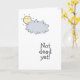 The card has a cute little sun and grey cloud cartoon and funny quote: 'Not dead yet!' in a fun script typography. The inside message says 'Happy Cancerversary!', but can easily be changed in any other message for a personalized design.
