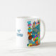 A mug with a funny cartoon about someone, in a group of clowns, letting go of something smelly. Original artwork DB Cartoons.