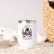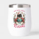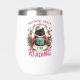 A fun and cheerful Christmas holiday design showcases a black cat dressed in a red cape and a white turtleneck sweater, engrossed in reading a book. The cat sits in front of fern and holly branches, under a golden arch adorned with bells. The colorful text reads, "Not now Santa, I'm reading." This design is available on various products that make perfect gifts for book lovers.