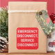Ein Blatt mit sechs, 3" x 3" NOTFALLDISCONNECT, Aufkleber für den DIENST-DISCONNECT für Elektriker, die zur Erfüllung der Anforderungen von Artikel 230.85 Buchstabe E Nummern 1 und 2 des nationalen Stromkodexes von 2023 verwendet werden sollen.