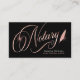 Elegante, trendige Visitenkarte für den notariellen Agent zur Kreditsignierung mit Imitaten Rose Gold handgeschriebene Kalligraphieschrift ''Notar'' auf schwarzem Hintergrund. Personalisieren Sie das Programm mit einem Namen auf der Vorderseite und Details auf der Rückseite.
