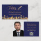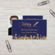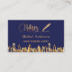 Marineblau mit vergoldeten Imitaten, vergoldetem City-Skyline und einem signierenden Stift als Dekoration. Personalisieren und fügen Sie Ihren Namen und einen Text auf der Vorderseite. Goldene Buchstaben Zurück: Vorlagen für Ihr eigenes Profil Foto, Name, Titel, Telefonnummer und QR-Code auf Ihrer Website.