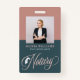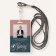 Modernes Notar Signing Agent ID Abzeichen. Das Design beinhaltet das Foto des Single, das Typografie-Skript ''Notary'' und einen Namen auf der Vorderseite und Kontaktdetails sowie Qr-Code auf der Rückseite.