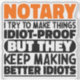 Funny Notary Redewendungen "Notar Ich versuche, Dinge zu machen idiot Beweis, aber sie Behielt, bessere Idioten zu machen". Nimm dieses lustige Notar-Design als lustige Geschenke für eine phantastische Mutter, einen Vater oder einen Freund.