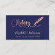 Eine elegante Visitenkarte auf marinebasischem Hintergrund und ein signierender Stift mit goldener Rose. Elegantes handgeschriebenes Stilskript. Personalisieren Sie Ihren Namen, Titel, Kontaktdaten und Ihren eigenen QR-Code und fügen Sie ihn Ihrer Website-Adresse hinzu.