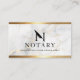 Notary Loan Signing Agent Gold Border Marble Business Card Eine elegante und luxuriöse Visitenkartenvorlage mit weißem Marmorhintergrund und goldenen Akzenten. Es ist mit einem N-Logo und einer wunderschönen schwarzen Feder mit "Notar" gekennzeichnet.Mit goldenen Akzenten verströmt diese Karte Raffinesse und Vertrauen, die sich perfekt für Gebäude-Verbindungen im realen Anwesen-, Rechts- und Finanzsektor eignet.