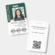 Professionelles Notar-ID-Abzeichen mit einem Profilfoto und drei Akkreditierungssymbolen oder einem Logo. Diese editierbare Vorlage kann mit Ihrem Namen, Ihren Qualifikationen und Ihrer Zulassung sowie mit Zertifizierungsmarken oder dem Logo Ihres Unternehmens für das Branding personalisiert werden. Zusätzliche Informationen und ein QR-Code sind auf der Rückseite enthalten. Dieses klassische Design kombiniert traditionelle und zeitgenössische Elemente und schafft ein elegantes, aber freundliches Erscheinungsbild. Es bietet vollständig anpassbaren Text, um Ihre Geschäftsmarke anzupassen. Perfekt für einen Notar, Loan Signing Agent, Certified Notary Trust Delivery Agent (CNTDA), Mobile Notar, Apostille oder andere juristische Fachleute. Gedruckte Farben: sehr dunkelgrün, weiß und goldfarben. Besuchen Sie die Online-Kollektion für weitere beliebte Produktideen und -zubehör, die für Notare konzipiert sind