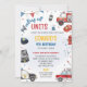 Rufen Sie alle Helden! Diese Action-verpackte Notrufwagen Geburtstagseinladung beinhaltet Polizeiwagen, Krankenwagen und Feuerwehrwagen - ideal für kleine Leute, die alles mit Rettungspaketen Liebe haben. Mit leuchtenden Farben und feinen Illustrationen ist diese personalisierte Einladung ideal für ein schnelles Party voller Spannung und Fantasie.
