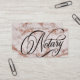 Moderne Rose Gold Marmor notary Visitenkarte mit elegantem Typografie-Skript ''Notary'' in trendiger, handgeschriebener Schrift in schwarzer Schrift auf einer Rose goldenen Marmor Hintergrund. Personalisieren Sie weiter mit Ihren Daten auf der Rückseite.