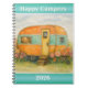 This Happy Campers 2026 spiral notebook features an original watercolor illustration of a retro orange-and-aqua caravan nestled among garden blooms, with a friendly pup peeking from the window. Calm, nostalgic, and gently playful, it’s designed to inspire moments of reflection wherever life takes you.