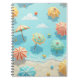 Das ist ein Notizbuch. Es zeigt ein Sommermeer und einen Sonnenschirm. Ich wünsche Ihnen einen schönen Tag.