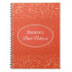 Notebook mit einer Grafik von kleinen Sternen in golden auf einer Mandarine orange Hintergrund mit der Phrase " Bride's Notebook" in einer ovalen Form mit koordinierenden Grenzen gezeigt. Passen Sie dieses Element an und ändern Sie den Namen in Ihren Namen oder entfernen Sie den Namen, ändern Sie die Sternenfarben in Filter, Hintergrundfarbe oder kaufen Sie, wie es ist. Die Farbtöne Gold, Weiß und Mandarine.
