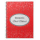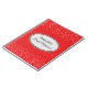 Notebook mit einer Grafik von kleinen Sternen in Grau auf einem Lippenstift roten Hintergrund mit der Phrase "Bride's Notebook" in einer ovalen Form mit koordinierenden Grenzen gezeigt. Passen Sie dieses Element an und ändern Sie den Namen in Ihren Namen oder entfernen Sie den Namen, ändern Sie die Sternenfarben in Filter, Hintergrundfarbe oder kaufen Sie, wie es ist. Grau, weiß, schwarz und rot.