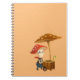 Ein Notizbuch, das eine Zeichentrickfigur mit einem Pilzhut fotografiert, der ideal für Kinder ist, die Cartoon Liebe haben Ein Pilzschirm für die Bedürfnisse Ihres Kindes