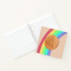 Ein buntes Spiralheft, mit Game-dalgona-Bonbons-Dreieck auf dem Regenbogen, seitliche Sicht