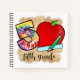 Eine Auswahl an Notebooks für Kinder mit Linien im Inneren. Die Auswahl reicht vom Vorkindergarten bis zur Stufe 6 mit einem Schulthema von Apfel, Bleistift und Lineal