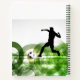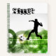 Dieses Notizbuch wird in regelmäßiger Form mit ausgekleideten Seiten in einem Sport-Fußball-Printdesign gezeigt. Passen Sie dieses Objekt an oder kaufen Sie, wie es ist.