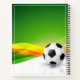 Dieses Notizbuch wird in regelmäßiger Form mit Uni-Regelseiten in einem Kunstdruck eines Fußballballs dargestellt. Passen Sie dieses Objekt an oder kaufen Sie es, wie es ist. Archivbild freepik.com