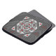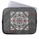 Eine konzentrische quadratische Mandala nimmt das Aussehen eines Tunnels an, der den Betrachter mit einer Kombination aus verworrenen Linien, Dreiecken und Kreisen in Grautönen, Rot und Weiß zeichne, um fast eine optische Täuschung zu erzeugen.