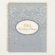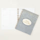 Dieses Planerheft wird mit einem kleinen Champagner-Sternenprint auf platinfarbenem Hintergrund gezeigt. Personalisierter Name für Sie, um sich in einem Elfenbeinoval mit zwei koordinierenden farbigen Rändern an der Vorderseite von mittelblau, stählerne, matte goldfarbenen Text anpassen zu können. Zurück gleiche Farbe und Sterne drucken. Passen Sie dieses Objekt an oder kaufen Sie, wie es ist.