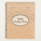 Dieses Planerheft wird mit einem kleinen silbergrauen Sternenprint auf einem weichen Peach Hintergrund gezeigt. Personalisierter Name für Sie, um sich in einem Elfenbeinoval mit zwei koordinierenden Farbrahmen von individuellem Grün und Driftholz grau auf der Vorderseite anpassen. Zurück gleiche Farbe und Sterne drucken. Text ist reich braun. Passen Sie dieses Objekt an oder kaufen Sie, wie es ist.