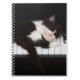 Notebook mit einem Foto-Druck eines niedlichen Kätzchens, das auf dem Klavier schläft. Passen Sie dieses Objekt an oder kaufen Sie, wie es ist. Bild