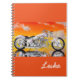 Notebook mit einem Foto-Druck eines scharf aussehenden Motorrads und eines individuellen Namens. Passen Sie diesen Artikel an und ändern Sie den Namen in Ihren Namen oder entfernen Sie den Namen und kaufen Sie, wie es ist. Bild