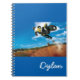 Notebook mit einem Foto-Druck eines Schmutzfahrers und eines individuellen Namens. Passen Sie diesen Artikel an und ändern Sie den Namen in Ihren Namen oder entfernen Sie den Namen und kaufen Sie, wie es ist. Bild