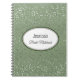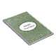 Kleine Sterne in silber-grau grace die Abdeckung des Notizbuchs dieser individuelle Name Braut. In einem Weiß-Grün mit ovalen und koordinierenden Randfarben dunkelgrün und Asche, mit lustigen und fantasievollen Texten Ihres personalisierten Namens in der Mitte und der Phrase "Bride Notebook" in schwarz dargestellt. Passen Sie dieses Element an. Finden Sie das Gästebuch, das für Ihren besonderen Tag erstellt wurde!