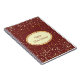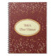 Dieses Notizbuch gezeigt in Burgund mit goldenen kleinen Sternen, ein Oval in Elfenbein mit koordinierenden Grenzen in Merlot und Marigold. Burgunder Text. Passen Sie dieses Element an.
