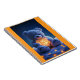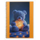 Adorable Orange Notebook mit Teddy Bear und Shiny Heart Grafik. Das Notizbuch zeichnet sich durch eine liebenswerte Teddybärengrafik aus, die liebevoll ein glänzendes Herz hält, das Glitzern im Licht liegt.