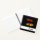Das Notebook wird mit schwarzem Hintergrund und extravagant schnellem Sportwagenprint gezeigt. Individuelle Name, passen Sie dieses Element an und ändern Sie den Namen in Ihren Namen, oder entfernen Sie den Namen, wenn Sie möchten, und fügen Sie anderen Text.